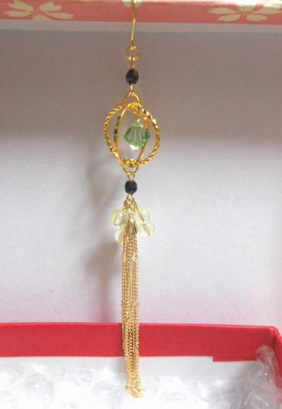 チェーンの上には暗いとほんのり光る(らしい)チェコビーズ。