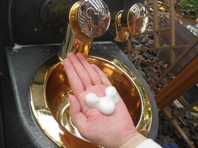 ボタンを押すとミッキー型の泡が出てきます!