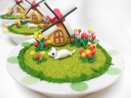 「風車とチューリップ畑」