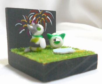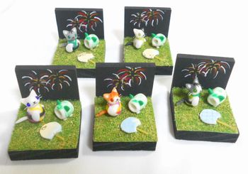 上から(しろねこさんはねじり鉢巻で大太鼓叩いてます)