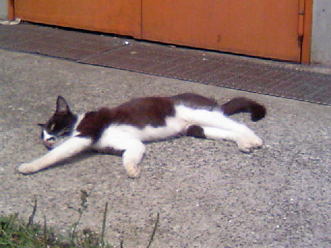休園日で人がいないひっそりとしたBBQ広場で寛ぐにゃんこ、