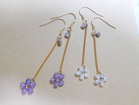 ピンクの花のピアスは自分用でお試しに作ってみました。