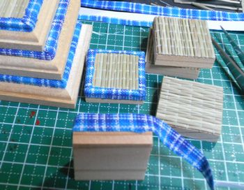 畳(ござ)を貼った後に畳ふちっぽいものを貼っていきます。