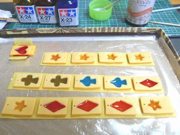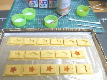 UVレジンにタミヤエナメルを混ぜて抜いたところに入れます。