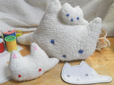 こちらはタオルをリサイクルして試しに作ったぬいぐるみ。
