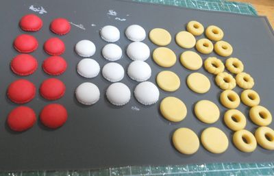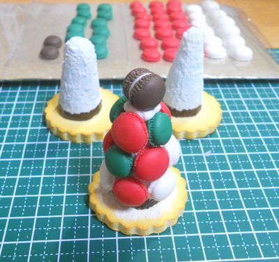 後ろの2本の台に一番後ろに見えるマカロンを貼り付けていきます。