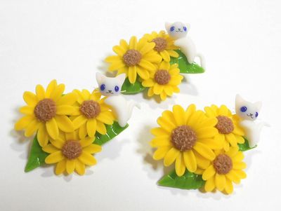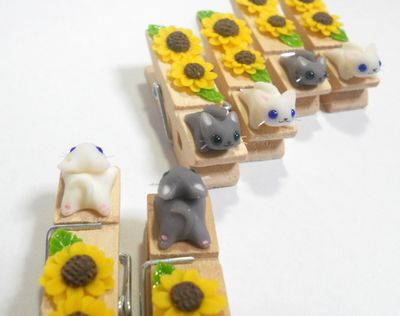 「ひまわりのねこねこウッドクリップ(2個セット)」