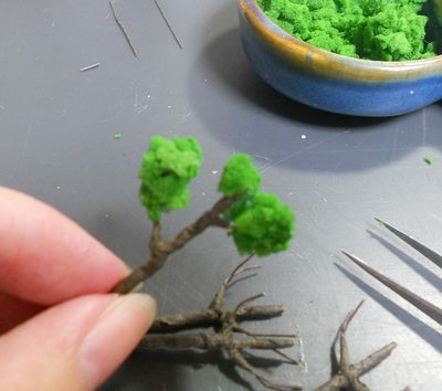 隙間や配置具合を見ながら葉っぱを作りながらつけます。