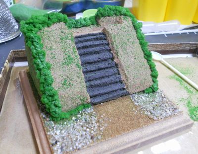 そしてそのまた上から緑のシーナリーパウダーを茶こしを使って撒きます。