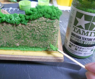接着面の隙間にテクスチャーペイントの草を埋めていきます。