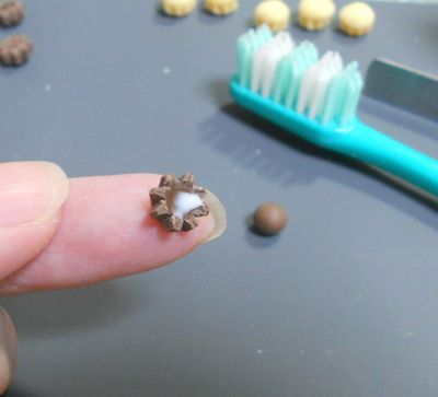 歯ブラシで押し付けながら表面をザラザラ(?)にしていきます。