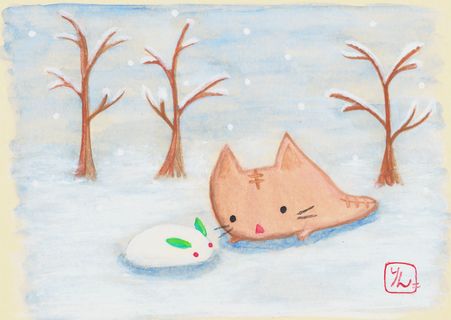 「雪のお布団からお目覚めなのにゃ?」