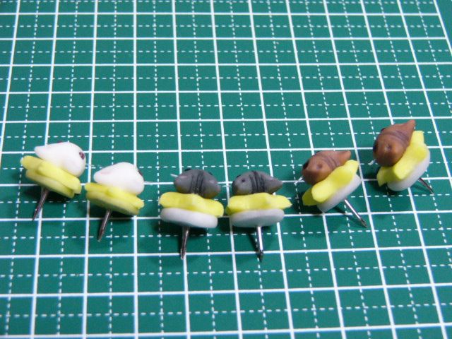 ちょっと違う形のプッシュピンも作りますよー。