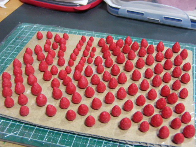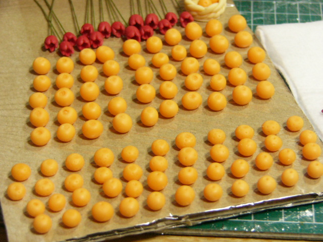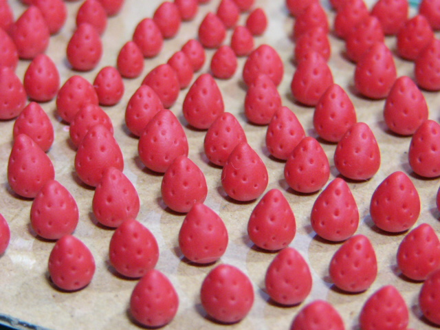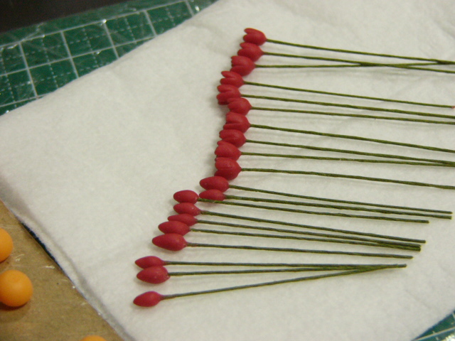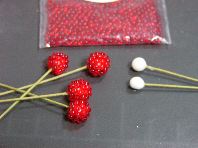 芯は樹脂粘土でガラスビーズを1つ1つ付けていくので