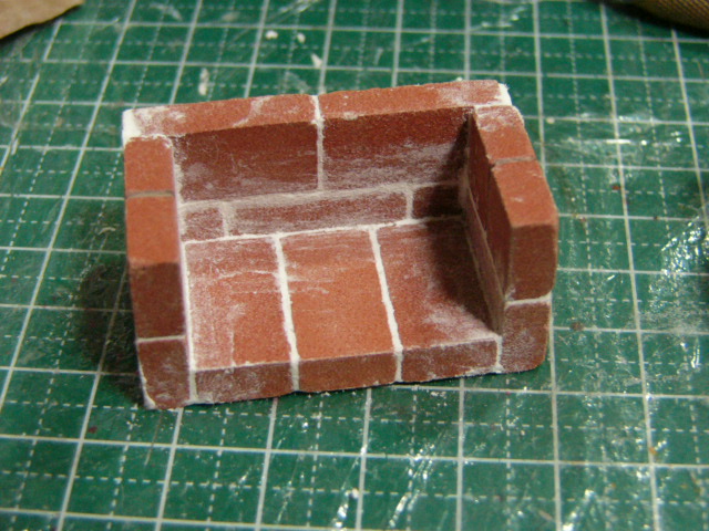 暖炉に天板を接着して隙間を石粉粘土で埋めてます。