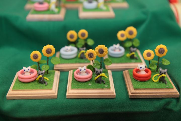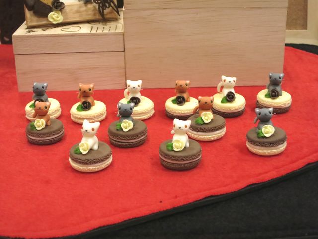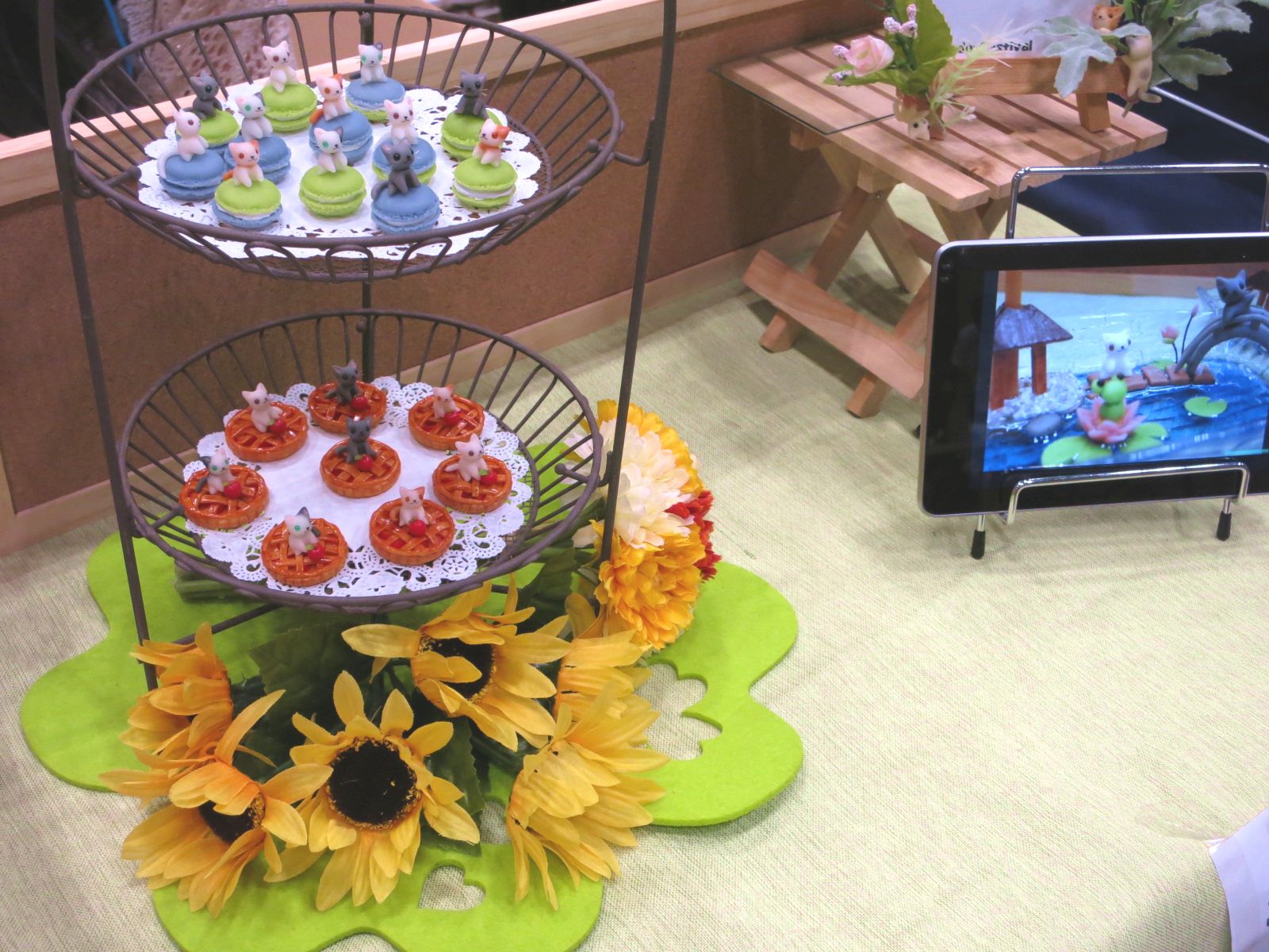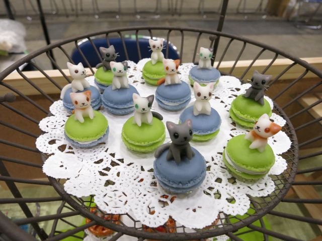 左<マカロン>右<アップルパイ>下・展示風景