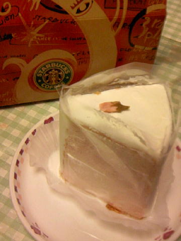 帰りにスタバで「桜シフォンケーキ」を購入して
